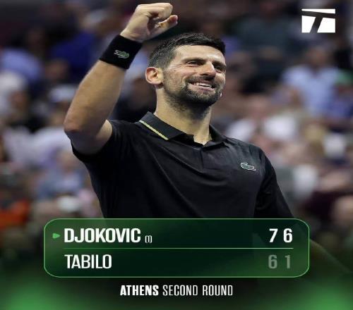 雅典网球公开赛,塞尔维亚球王德约科维奇以7-6(3) 6-1击败塔比洛,赢得双方交手首胜,成功晋级ATP250雅典站八强!...