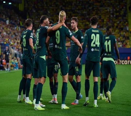 10月21日,曼城队球员在比赛中庆祝进球。 当日,在2025-2026赛季欧冠联赛阶段第三轮比赛中,英超曼彻斯特城队客场2比0战胜西甲比利亚雷亚尔队。 新华社发